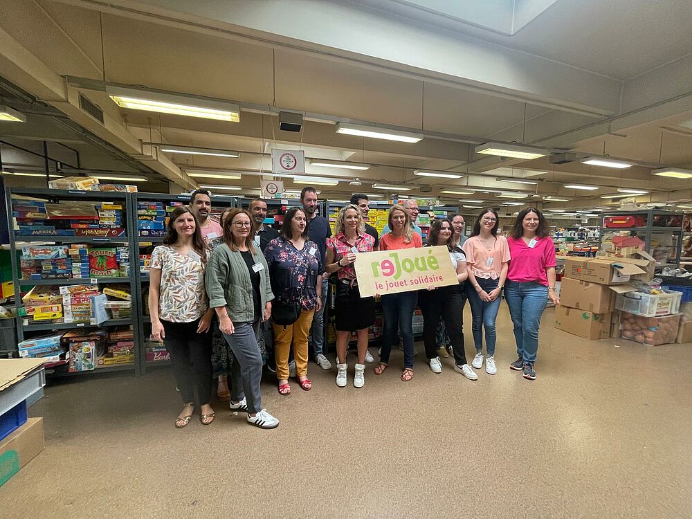 Nous collectons et recyclons, dans le cadre de notre collaboration avec l’association Rejoué, des jouets offerts aux enfants dans le besoin ou revendus en boutiques solidaires. L’association donne une seconde vie aux jouets et aux livres tout en accompagnant des femmes et des hommes vers l’emploi durable et l’inclusion sociale. Nous organisons une collecte annuelle à laquelle nos équipes participent activement et nous allons passer une journée auprès des équipes Rejoué lors de notre journée annuelle de solidarité.